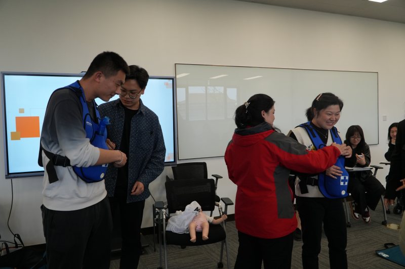 “手把手”教學(xué)模式下,大家個個爭先恐后,積極投入到各項急救技能的學(xué)習(xí)中。有人躍躍欲試地學(xué)習(xí)心肺復(fù)蘇(CPR)的正確姿勢與注意要點,有人認真學(xué)習(xí)著如何快速有效地處理氣道異物梗阻。在笑聲與掌聲中,學(xué)習(xí)氛圍變得越來越熱烈,仿佛每個人都沉浸在一場急救技能的“洗禮”中。